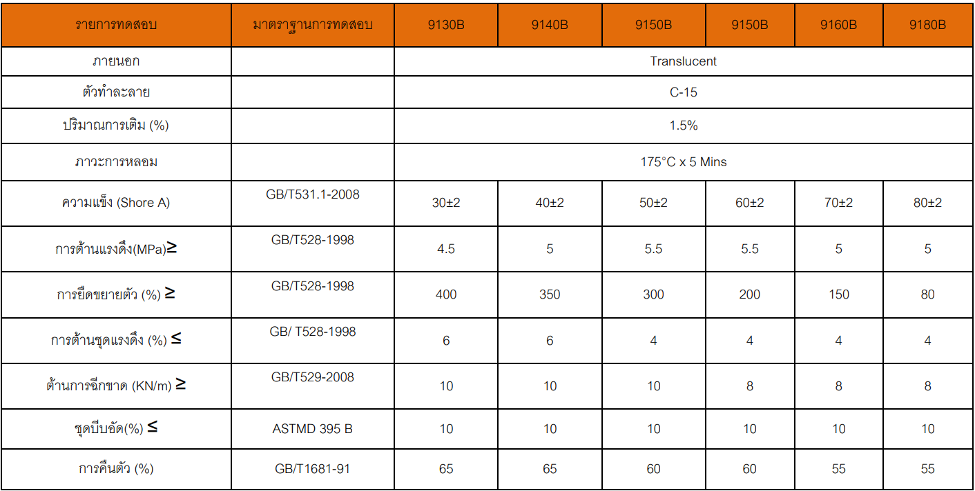 PS-9150B series เป็นยางซิลิโคนที่มีความเปลี่ยนแปลงที่แรงกดต่ำ มีความยืดหยุ่นสูง เหมาะ สำหรับกระบวนการอัดขึ้นรูปด้วยวิธี Compression molding, extrusion molding and calendaring molding processes(การรีด)