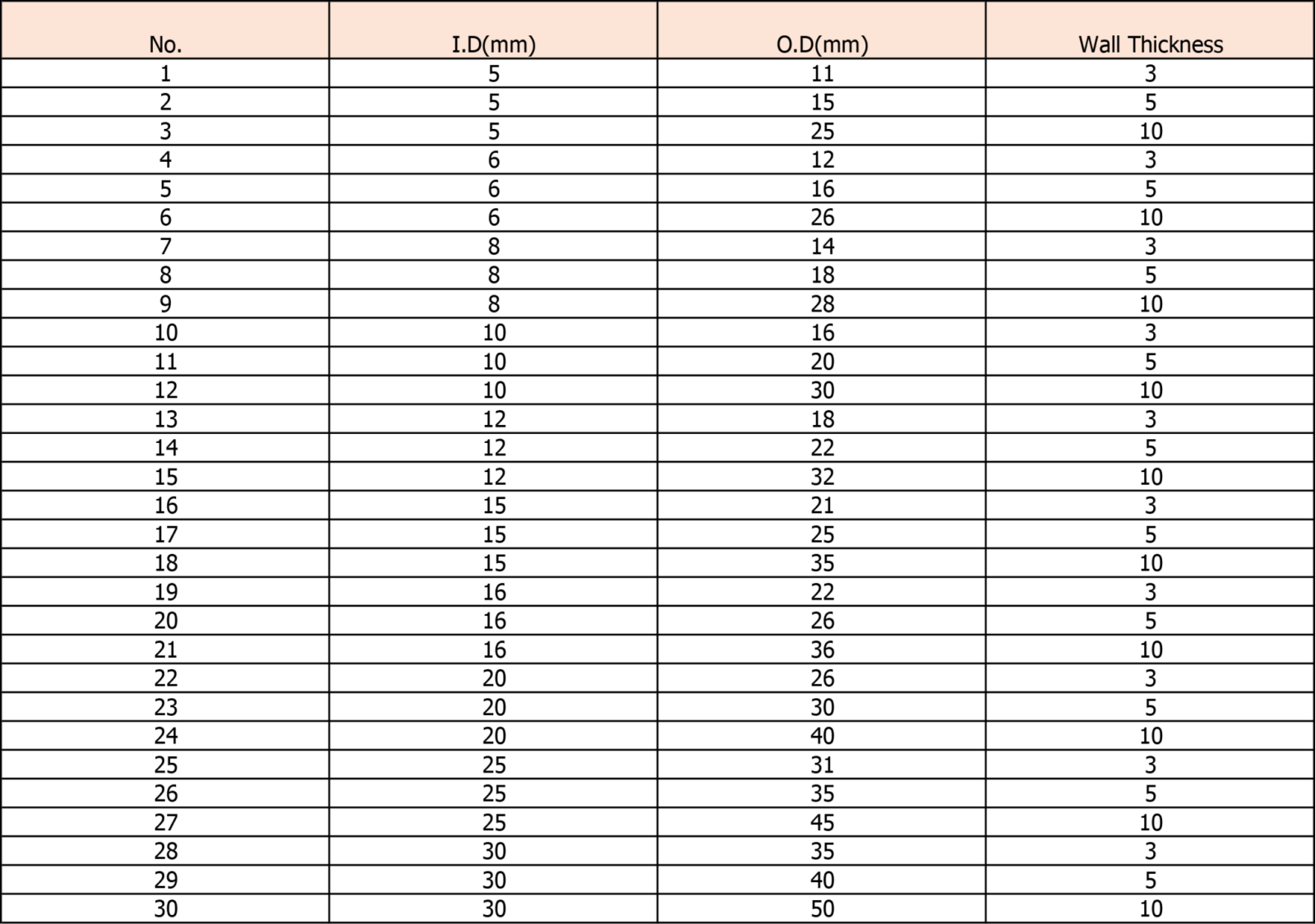 | Diameter | 1-60 mm(OD), 0.5-50 mm; |