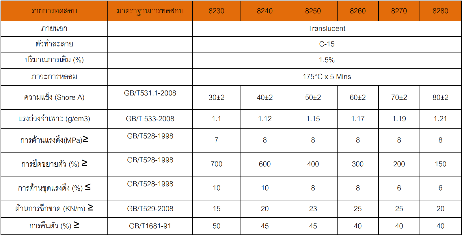 PS-8250 เป็นยางซิลิโคนที่สามารถทนความร้อนได้ระดับสูงเหมาะสำหรับกระบวนการขึ้นรูปด้วยวิธี Compression molding และ Extrusion Molding